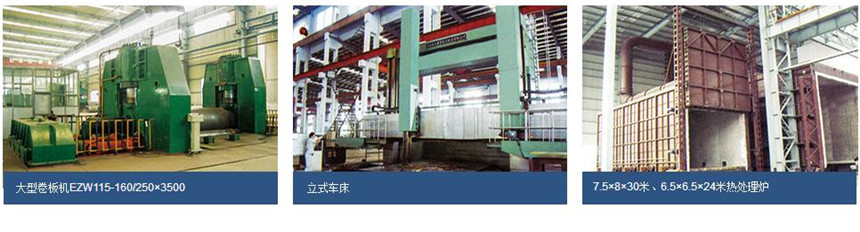 車間擁有生產(chǎn)設(shè)備1100臺套,擁有∮32-∮76蛇形管生產(chǎn)流水線和膜式壁拼排焊接機,行車最大起吊能力達700噸。冷卷180mm/熱卷250mm板厚的重型卷板機,(8m×8m×30m,800℃)整體熱處理爐;建有大型探傷室,配備1000℃的高溫電子試驗機,6MeV電子直線加速器,穿透能力達250mmy射線;擁有林肯帶極堆焊機、深孔對接焊管板自動焊機、小管內(nèi)孔堆焊機;金工車間配有CKX511000型立車、數(shù)控立車加工最大尺寸達φ6.3m*4m,4m龍門數(shù)控多頭深孔鉆床和行程12m鏜軸φ200mm的TJK6P20A數(shù)控落地鏜銑床等先進的重型加工設(shè)備。