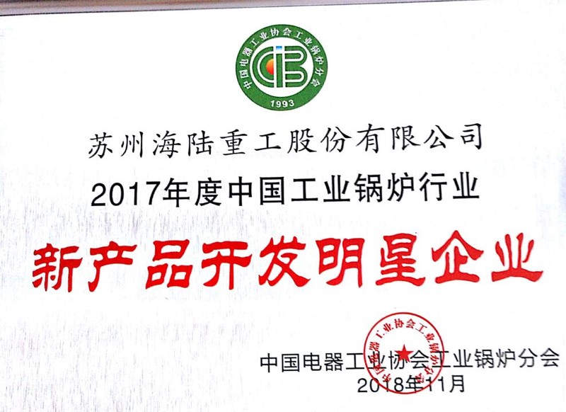 “2017年度中國工業(yè)鍋爐行業(yè)新產(chǎn)品開發(fā)明星企業(yè)"
