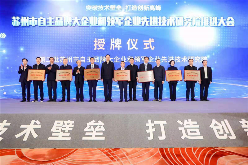 2019年12月21日,徐元生董事長(zhǎng)率隊(duì)參加了由蘇州市委、市政府組織召開的第二批蘇州自主品牌大企業(yè)和領(lǐng)軍企業(yè)先進(jìn)技術(shù)研究院推進(jìn)大會(huì),并榮獲市政府授牌蘇州市大企業(yè)和領(lǐng)軍企業(yè)先進(jìn)技術(shù)研究院。